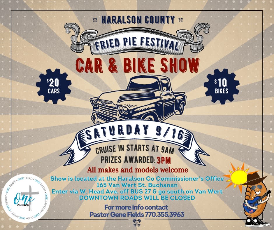 The 7th Annual Fried Pie Festival is Saturday, September 16, 2023. Be ready to shop, eat, enjoy some live entertainment on two stages. There will be a car & bike show, tractor show, live demonstrations, and axe throwing. You will find some of the best fried pies in Georgia!